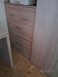 Camera da letto due letti singoli con contenitori, 2 comodini, 1 comò con 6 cassetti, un armadio 4 ante 180 cm larghezza x 246 cm altezza (profondità 58 cm), 1 scrivania 123x55 , 1 sedia.