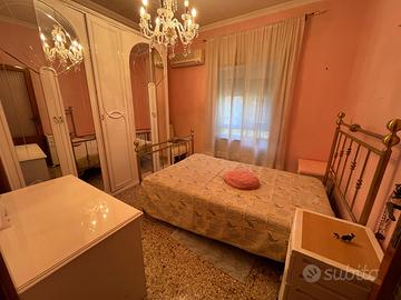 Camera da letto in legno laccato bianco completa di cassettiera 4 cassetti con specchio, letto una piazza e mezza in ottone, comodino 3 cassetti, armadio 5 ante con specchi nelle ante laterali e anta chiusa centrale. Vieni smontala e portala via. Per info contattami