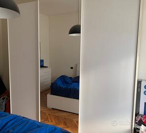 Vendo camera da letto completa di letto matrimoniale con contenitore interno, due comodini, comò, specchio, armadio a tre ante scorrevole con specchio a 800 €. Trasporto e smontaggio esclusi.