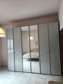 Camera da letto composta da letto, n. 2 comodini, comò e armadio come foto. colore grigio perla laccato.