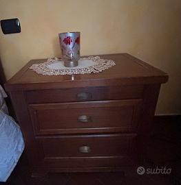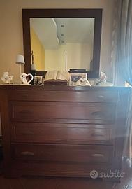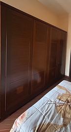 Designer Bruno Piombini in legno massello, qulche graffio sui comodini facilmente ripristinabile, armadio capietnte, letto rintagliato, comó con specchio completo.