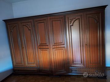 229 euro. Vendo camera da letto completa di armadio a sei ante basso e letto in stile classico in ottimo stato, misure armadio H198 L310 P63 cm.
