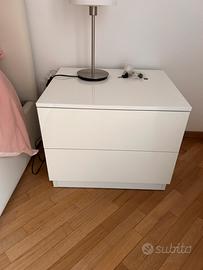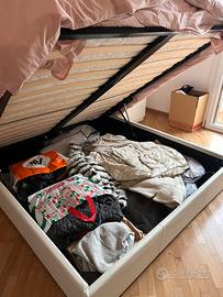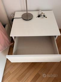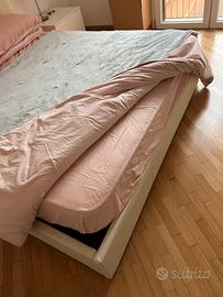 Camera da letto completa di letto due comodini e materasso. Letto con contenitore super capiente. Letto rivestitio in simil pelle bianca. OTTIME CONDIZIONE