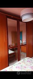 3. Armadio quattro stagioni con ante in legno e in vetro, tutte scorrevoli, in legno tamburato di ciliegio, interni armadio con mensole e appendi abiti inseriti 400 euro