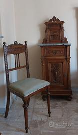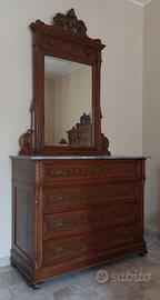 Vendo camera da letto completa primi anni ‘ 900 interamente fatta a mano, costituita da letto alla francese, due comodini, comò con specchio, armadio e due sedie. Legno massello, decorazioni floreali tipiche del design anni ’10-20’. Condizioni buone. Ideale per amanti del design vintage o per progetti di restauro e arredo d’epoca. No spedizioni smontaggio e ritiro a carico dell'acquirente.