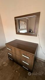 Vendo camera da letto completa di letto con tavarca, due compdini, cassettiera + specchio, armadio a 5 ante.