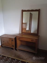 Camera da letto completa composta da :struttura letto, armadio,2 comodini,2 sedie,toletta con specchio,comò con 3 cassettoni(non in foto).Regalo secondo armadio copia del primo realizzato in secondo tempo.Spese di trasporto a carico dell'acquirente