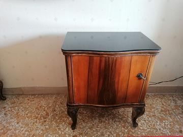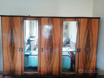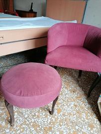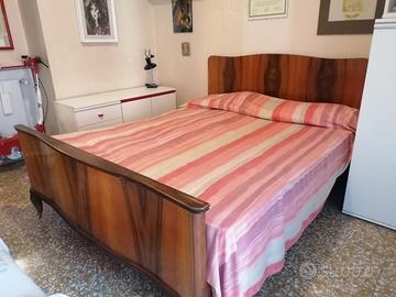 Camera da letto completa: 2 comodini, pouf e poltroncina, toeletta e comò senza specchio, testiera e pediera letto matrimoniale. I mobili sono buoni ma alcuni sono tarlati.