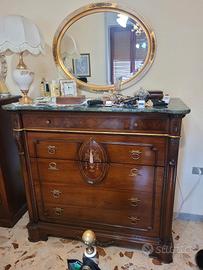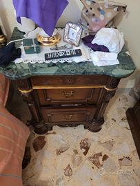 Vendo camera da letto completa, letto in ferro battuto con armadio sei ante in legno , due comodini e un comò con portagioie e specchio e rivestimento marmo originale verde ..trattabile con trasporto a carico del acquirente