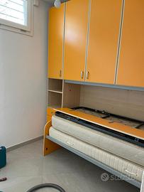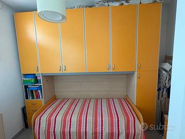 Vendesi cameretta completa come in foto, completa di comodino e 2 materassi. In perfette condizioni Larghezza 290 cm Profondità 55 cm Altezza 257 cm