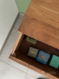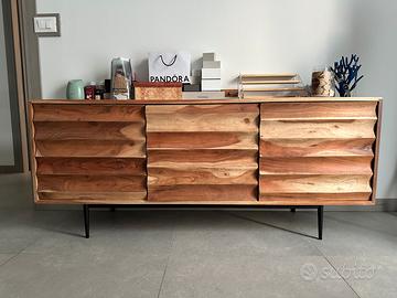 CAMERA DA LETTO LINEA PETTER SKLUM Il set è stato acquistato nuovo nel 2024 (fattura disponibile). Richiesti: 700,00€ LINEA PETTER - SKLUM 1) Madia in legno di acacia linea Petter (Sklum) Misure: 145x40cm (fuori produzione) Valore d’acquisto: 495,00€ 2) n.2 comodini sospesi in legno di acacia linea Petter (Sklum) 55x35cm Valore d’acquisto: 239,90€ 3)Testiera letto matrimoniale in legno di Acacia linea Petter (Sklum) Misure: 80x160x5 cm (fuori produzione) Valore d’acquisto: 309,95€