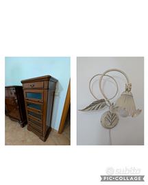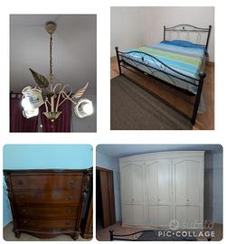 Vendo camera da letto completa in ottime condizioni generali, composta da: ✨ Armadio a 6 ante color crema con rifiniture dorate, capiente e ben tenuto ✨ Letto matrimoniale in ferro battuto nero con decorazioni floreali e rete a doghe ✨ Comò in legno massello con 4 ampi cassetti ✨ Due comodini coordinati a 3 cassetti ciascuno ✨ Mobile “settimino” alto a 6 cassetti ✨ Coppia di applique da parete + lampadario abbinato in ferro battuto color avorio e vetro satinato ✨ Specchiera con cornice dorata intagliata, abbinata al comò ✨ bastone in ferro battuto abbinato (non in foto) Tutti i mobili sono in legno massello, stile classico/artigianale, con maniglie in ottone e finiture lavorate. In buono stato complessivo, presentano lievi segni di usura dovuti al tempo e alcune maniglie da sostituire, facilmente reperibili e sostituibili con pochi euro. 📍 Visione e ritiro in zona Porto Empedocle (AG) 💰 Prezzo per l’intero blocco – leggermente trattabile 📦 Vendita preferibilmente in blocco, ritiro a carico dell'acquirente Ulteriori informazioni o foto dettagliate su richiesta 📩