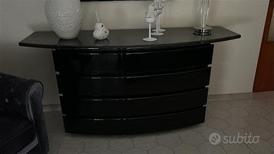 Armadio con ante scorrevoli , como’ e comodini in legno laccato , letto in pelle.