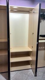 Armadio 6 ante (2 a specchio) con ripiani, appendiabiti e porta pantaloni;