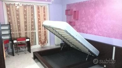 Struttura letto matrimoniale con contenitore (materasso non incluso) + testiera + comodini (con luce incorporata) collegati alla testiera (volendo rimovibili);