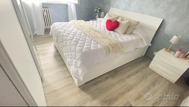 Camera 6 ante battenti con specchio centrale con letto contenitore effetto bianco larice cm. 274 x 60 x 250