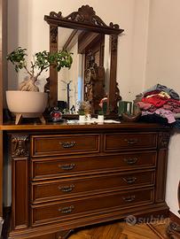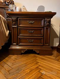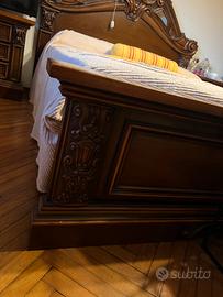 Camera da letto completa composta da : -letto matrimonile -coppia di comodini -armadio a sei ante -como con specchiera -lampadario Tenuta maniacalmente . Legno massiccio . Stile barocco Disponibili altre foto per messaggio