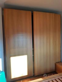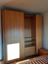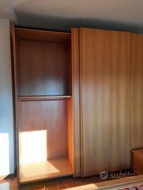 Vendo camera da letto classica composta da armadio con 3 ante scorrevoli, una cassettiera interna, varie mensole e tubi appendiabiti, letto matrimoniale con doghe, 2 comodini, cassettiera esterna e specchio.