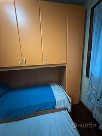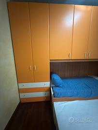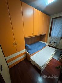 Vendo camera letto singolo con scomparto secondo letto Due materassi inclusi Mai utilizzata Prezzo trattabile Misure: Lunghezza 90,5 + 107,5 + 45,5 totale 243,5cm Altezza 258 cm Profondità 60/90cm