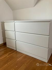 Per cambio arredamento vendo camera da letto in legno color bianco comprendente: N. 1 letto matrimoniale e due piazze con “rete” a doghe N. 2 comodini N. 2 casettiere grandi N. 1 cassettiera piccola