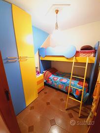 vendo bellissima camera da letto con letto a castello comodino a 4 cassetti e armadio alto 2 metri per 1.60 circa.