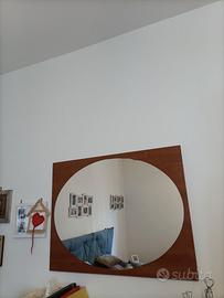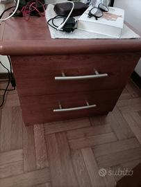 Camera da letto composta da rete matrimoniale a doghe (materasso non incluso), bastone x testata ( cuscini non inclusi), cassettiera a 3 cassetti, 2 comodini, specchio con sagoma ovale. Colore marrone . Ottimo stato.