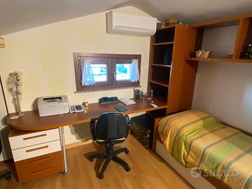 Vendo set camera da letto con letto e scrivania come nuova, attualmente montata in una mansarda ma perfetta per qualsiasi stanza, se interessati dispongo anche di armadio su misura per la parte inclinata del tetto oppure armadio a 5 ante per stanza normale.