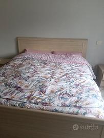 camera da letto,completa di armadio, comò, comodini 2,e letto con rete e materasso,in buono stato,colore pino chiaro.