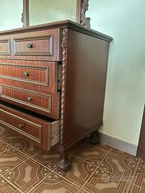 Camera vecchia, ben tenuta, presenta difetti come pomello mancante al comodini, e segni di usura sui mobili e sul letto
