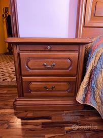 Vendo camera da letto composta da armadio, letto due piazze, due comodini e comò con specchiera. Tutto in ottimo legno massiccio e in buonissime condizioni.
