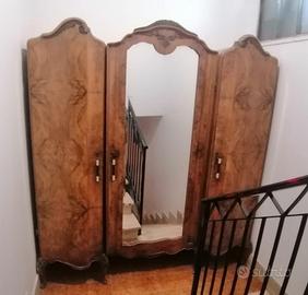 Vendo splendida camera da letto d’epoca completa in radica di noce, con piani in marmo originali e specchi sagomati, riconducibile allo stile Luigi Filippo / primi Liberty italiano (inizi ‘900).