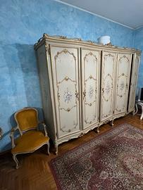 Armadio a più ante con pannelli dipinti e fregi dorati