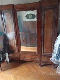 Camera completa di letto matrmoniale, comodini con piano di marmo, armadio, comò con specchio. Mobili anni '50 originali, necessitano di alcuni lavori di restauro.