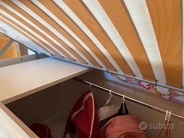 Camera bambini/ragazzi Dielle (gruppo Doimo) in ottime condizioni, inclusiva di: 1 letto container con armadio (il letto si alza per poter accedere facilmente all’armadio, per una migliore pulizia e per facilitare il cambio lenzuola) - libreria con mensole e antine - grande e profonda cassettiera - scaletta con cassetti contenitore - mensole e gadget vari da utilizzare per completare l’arredamento tra cui un’ulteriore struttura con mensole - materasso con copri doghe - spondine laterali che si abbassano per poter rifare il letto (volendo si possono togliere) - possibilità di un secondo letto (prezzo a parte). Per ulteriori informazioni e misure scrivetemi in privato. Prezzo trattabile