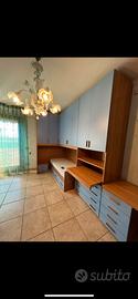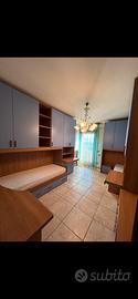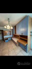 Camera da letto composta da 2 unità ( 1 angolare e una lineare ) ciascuna formata da letto singolo contenitore, ampi armadi e scrivania.