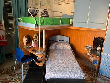 -Struttuta a ponte due letti e mobile scala: Larghezza 220cm lunghezza 360cm altezza 260cm. Le misure della camera da letto non includono le misure della cabina armadio