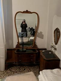Vendo camera da letto e comò separato stile antico. Comprensivo di due comodini con piccolo specchio sopra. Trasporto e smontaggio a carico dell’acquirente. Mobili utilizzati ma ancora in buone condizioni.