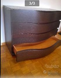 Armadio wengè con 3 ante scorrevoli + comò a 3 cassetti motivo a onda. Ottima qualità. Come nuovo.