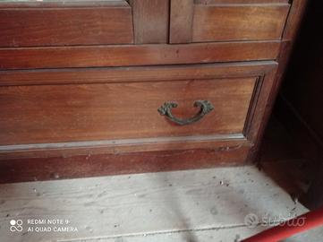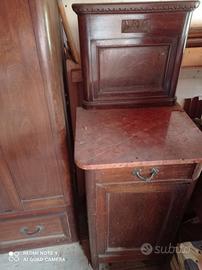 Camera da letto fine anni '800 inizio anni'900 composta da letto matrimoniale, armadio con specchio centrale, 2 comodini, comò con specchiera, 2 sedie. Tutto da sistemare. Prezzo trattabile.