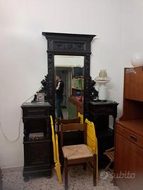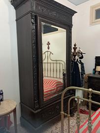Camera da letto completa risalente agli ultimi anni del 1800. Cornice letto in ottone, armadio con specchio e cassetti interni ed esterni, toletta con specchio centrale, 2 comodini con base in marmo
