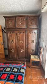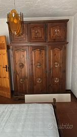 Vendo Camera da Letto stile Montagna in Legno di Noce inclusiva di Letto (L=175 x P=210 cm) con Rete e Materasso, Armadio 3 Ante (L=170 x P=60 x H=235 cm) e 2 Comodini (L=45 x P=35 x H=65 cm).