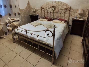 5 ante,1 comò,2 comodini,1 letto matrimoniale in ferro battuto,1 rete in doghe di legno Eminflex.