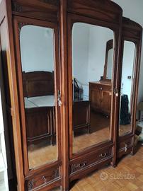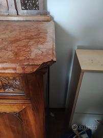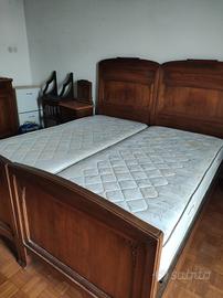 bellissima camera da letto in legno composta da letto matrimoniale divisibile a formare due letti singoli, due comodini, armadio a tre ante con cassetti e comò molto capiente con piano in marmo rosa (angolo sbeccato da riparare come da ultima foto), possibile sostituirlo con altro comò più piccolo ma integro. se interessati invio foto.