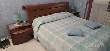 Camera da letto in ciligio comprensiva di Letto, materasso "Pirelli" 2 comodini in ciliegio e cristallo, 1 comò a 4 cassetti, 1 specchio in critallo tondo e 2 aplique in ottone "come da foto". Non spedisco, smontaggio e trasporto a cura dell'acquirente.