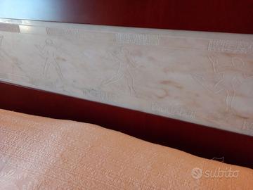 La spalliera del letto è decorata con una balza di marmo con disegni incisi.