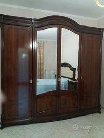Vendo "Originale" camera da letto, come da foto, con mobili in legno massello massiccio, color noce, intarsiato con piani di ottimo marmo come nuovi.