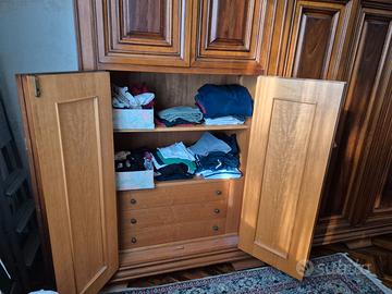 Camera da letto in legno massello composta da armadio 4 stagioni, cassettone, 2 comodini e specchiera. Ancora perfettamente utilizzabile in tutto e per tutto.