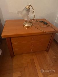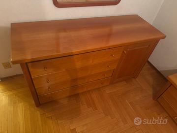 Vendo camera da letto completa in legno massello, composta da: Armadio a più ante con pannellatura lavorata, molto capiente e in ottime condizioni. Misure: H 2.50cm L 3.20 cm P 60 cm Cassettiera con più cassetti, scorrevoli e ben tenuti, ideale per biancheria e abbigliamento. Misure: H 72cm L 1.45cm P 50cm Due comodini in ottime condizioni. Misure: H 42cm L 68cm P 43cm. Trasporto: A carico dell'acquirente (consigliato furgone e due persone per il carico).