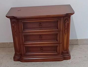 camera da letto in legno massiccio più 2 comodini e como'con specchiera e cassetti.