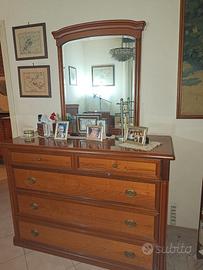 Camera da Letto Classica (Vendibile in blocco o separatamente) Armadio a 6 Ante con Specchi Centrali: Descrizione: Ampio armadio a 6 ante in legno, stile classico ed elegante. Le due ante centrali sono dotate di specchi a figura intera. Ottima capacità contenitiva e finiture curate. Prezzo: €400 Comò con Specchiera: Descrizione: Comò in legno abbinato all'armadio, dotato di 4 ampi cassetti (2 piccoli in alto e 2 grandi sotto). Completo di grande specchiera superiore coordinata. Prezzo : €100 Letto Matrimoniale e Comodini: Descrizione: Struttura letto matrimoniale in legno con testiera lavorata. Inclusi nel prezzo due comodini a 3 cassetti coordinati. Poltrona imbottita Prezzo : €150 (set completo). Tutto in ottime condizioni a parte una bruciatura al lato del letto come in foto . Tutto il set a 100€ Smontaggio e trasporto a carico dell'acquirente.